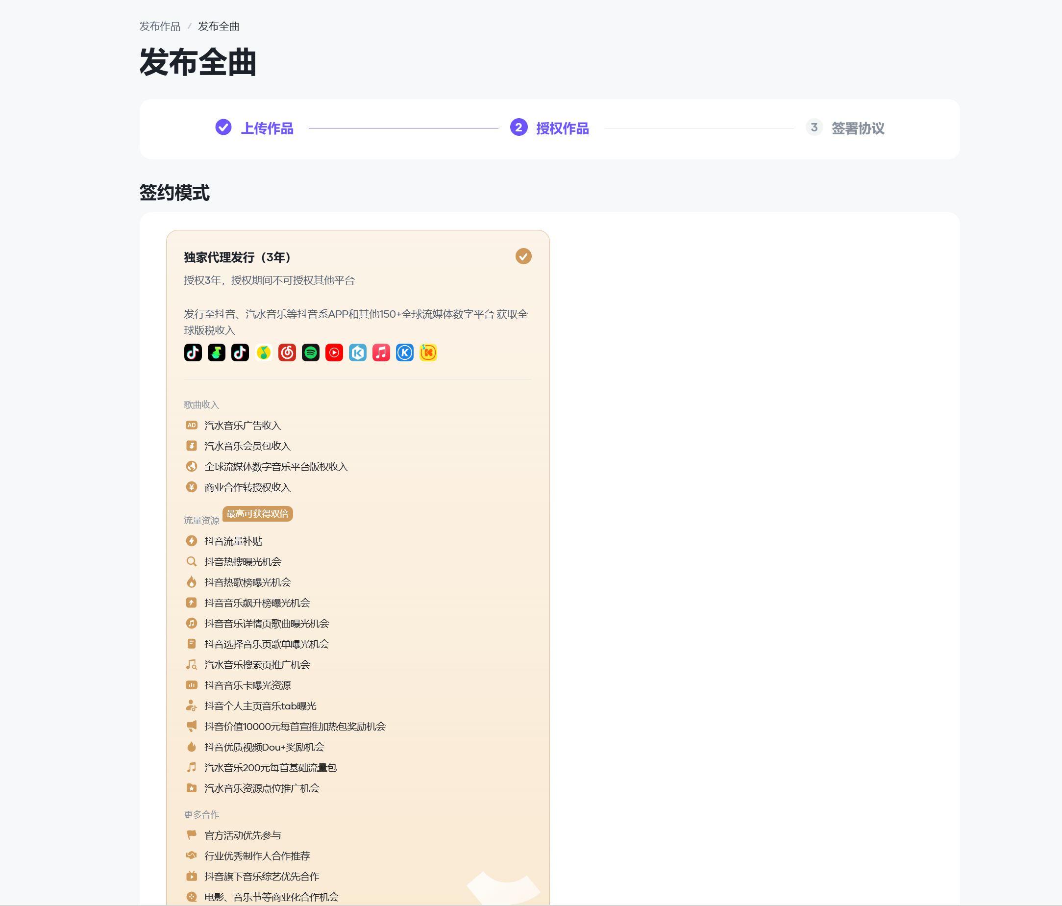 然后下一步,签约模式也只有【独家代理发行】,选择困难症也不用纠结了。