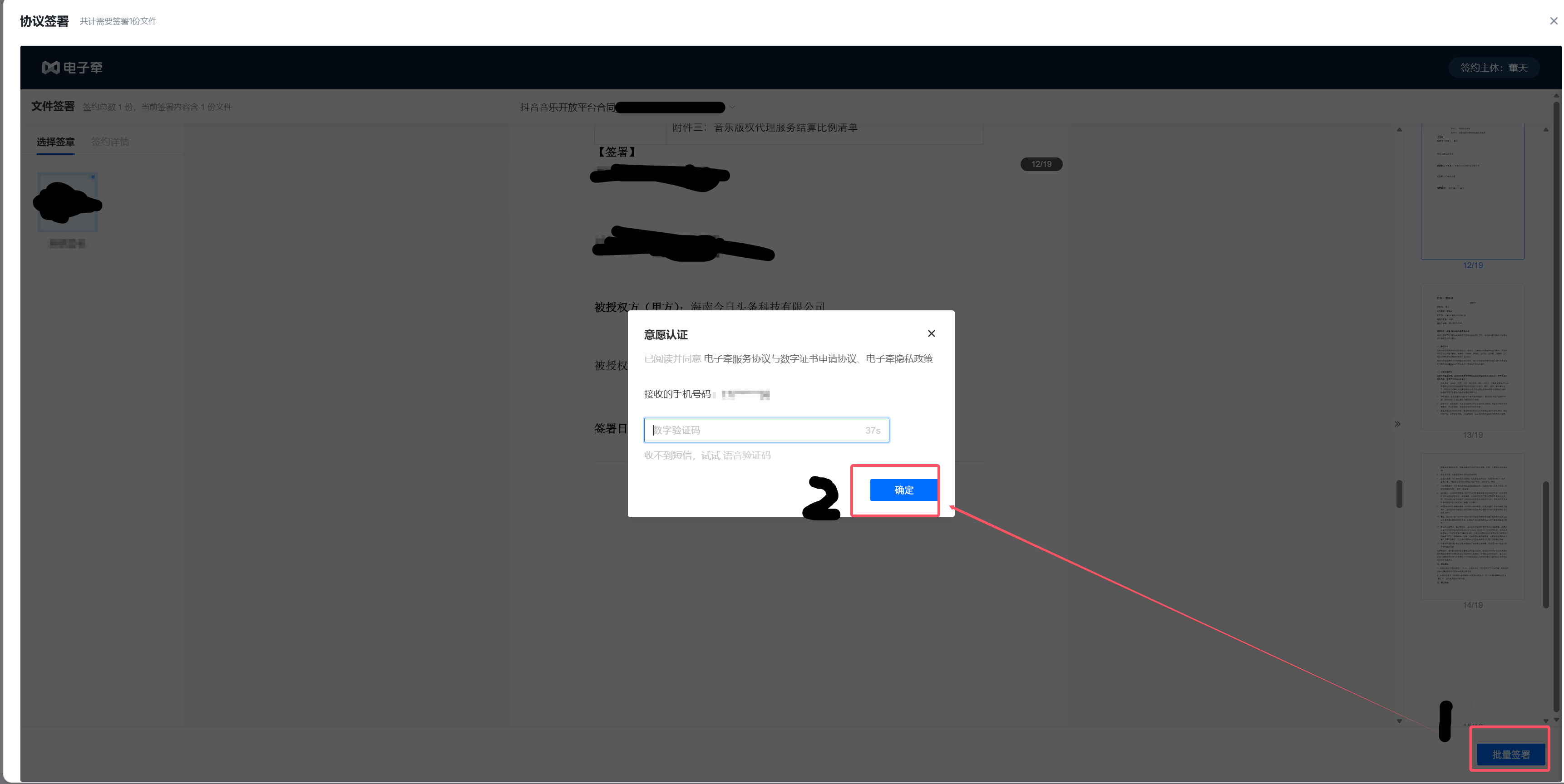 再继续下一步,就开始合同签署了。合同签署是输入手机号然后收验证码电子签约的。